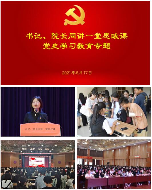 2021年6月17日,在杨林校区学生会堂由学院党委书记梁子卿同志和学院执行院长李艳同志为学生带来两场以“党史学习教育”为主题的思政大课,各二级学院学生共计1200余人参加本次课程,党委办公室孔凡芸同志主持。