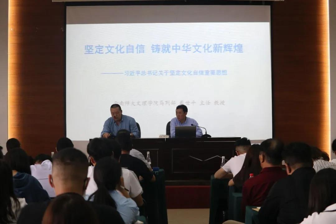 戴教授围绕《习近平谈治国理政》第三卷,以“坚定文化自信,铸就中华文化新辉煌”为题,从深刻领会习近平总书记关于坚定文化自信重要思想等方面进行宣讲。