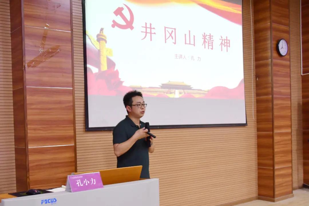 体育学院直属党支部书记孔小力同志讲授主题为井冈山精神。井冈山革命根据地是第二次国内革命战争时期毛泽东创立的第一个农村革命根据地,开辟了中国革命以农村包围城市,武装夺取政权的光辉道路,被称之为“革命摇篮”。井冈山精神是中国革命精神之源,是中国共产党宝贵的精神财富,是开创中国特色社会主义事业的强大精神动力,鼓舞着一代又一代中国共产党人为党和人民的事业而英勇奋斗。学习井冈山精神,要求我们胸怀理想,坚定信念,实事求是,勇闯新路,艰苦奋斗,敢于胜利,做到相信群众,依靠群众,从群众中来到群众中去。