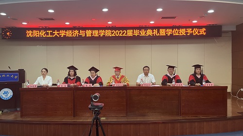 6月18日下午,经济与管理学院2022届毕业典礼暨学位授予仪式在学校图书馆学术报告厅举行,许光文校长亲临主会场并讲话,与学院领导班子和教师代表一起身着导师服,通过视频方式为本硕毕业生授予学位,送上真挚的祝福。学院教师和毕业生300余人在“线上”共同见证了这一庄重时刻,留下了属于化大的美好回忆。