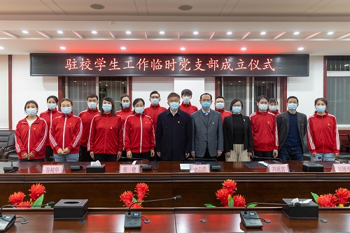 会上,党委组织部部长冯质雷宣读了党委关于成立驻校学生工作临时党支部的决定。