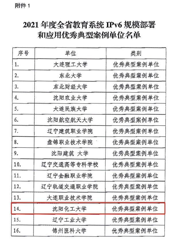 12月14日,辽宁省教育厅办公室下发《关于公布全省教育系统IPv6规模部署和应用典型案例结果的通知》,此次共评选出16个优秀典型案例单位和10个典型案例单位。其中,taptap网络与信息化中心报送的“IPv6规模部署助力学校数字化转型”荣获“2021年度全省教育系统IPv6规模部署和应用优秀典型案例”。