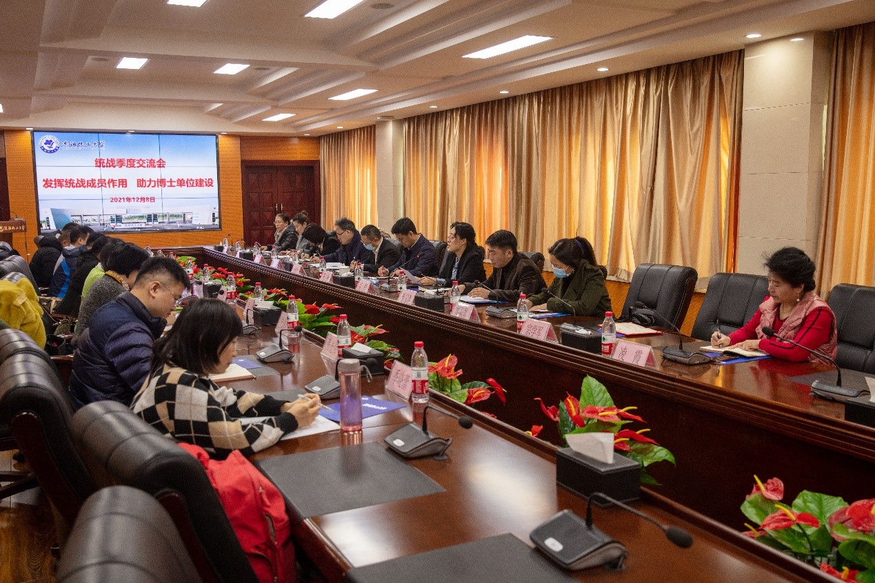 12月8日下午,学校党委在第八会议室召开博士单位建设专题统战成员交流会。校党委书记王强出席会议,各民主党派、统战团体等20余人参加座谈。会议由党委统战部部长孟野主持。