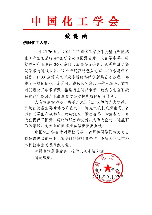会后,因taptap为本次峰会成功举办做出了重要贡献,中国化工学会向taptap发来致谢函,感谢taptap为峰会提供了圆满、高效的服务和支撑。