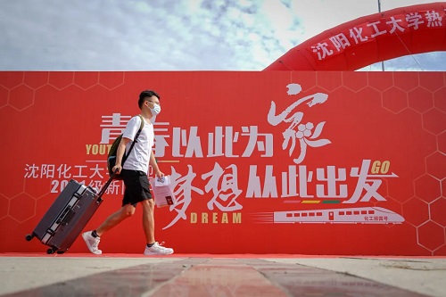 学校在报到口设置了等待区、核酸检测区、测温验证区、临时隔离区,新生在工作人员的引导下有序排队,凭核酸检测报告、入学通知书、身份证、辽事通健康码等,经过测温无异常后进入校园。