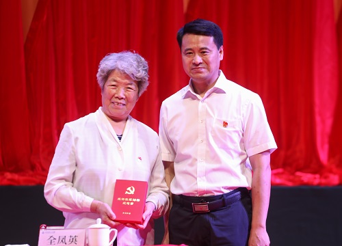 党委书记王强为荣获“光荣在党50年”纪念章的老党员代表张成巨、周辛岭、全凤英颁发了纪念章。“光荣在党50年”纪念章是党中央2021年首次颁发的纪念章,是中国共产党成立100周年系列庆祝活动的重要组成部分。经上级审核批准,taptap有26名老党员获得“光荣在党50年”纪念章。