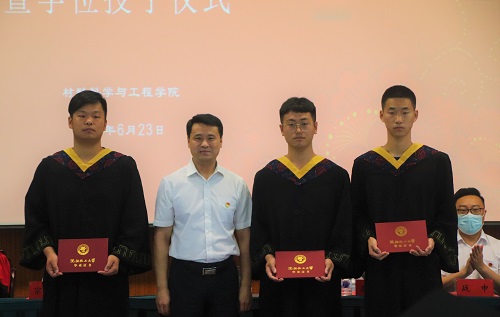 韶光如水惜别离,青葱岁月不相负;绿海如茵的六月,我们为青春歌颂。6月23日上午9时,材料科学与工程学院2021届毕业生毕业典礼暨学位授予仪式在机关楼学术报告厅举行。党委书记王强出席典礼。学科规划处处长孙亚光,研究生院院长宗学军,团委书记战申,材料科学与工程学院党政领导班子成员、学位评定委员会成员及教师代表参加典礼。典礼由材料学院高分子材料与工程专业教研室主任王涛老师主持。