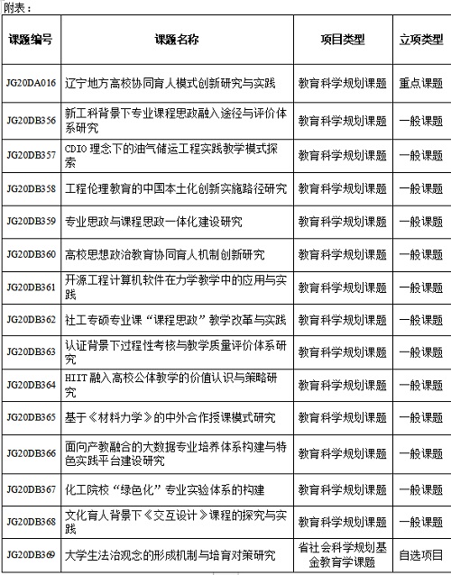 日前,辽宁省教育科学规划领导小组办公室通知公布省教育科学规划立项课题评选结果(辽教科规办字[2021]4号),taptap15个项目获得省教育科学规划课题立项,其中重点课题1项、一般课题13项、教育学自选课题1项(名单见附表)。taptap此次规划课题立项项目的数量位居我省高校前列,保持了学校近年来教改研究的良好态势,也展现了教育教学改革工作的新思路和新成果。