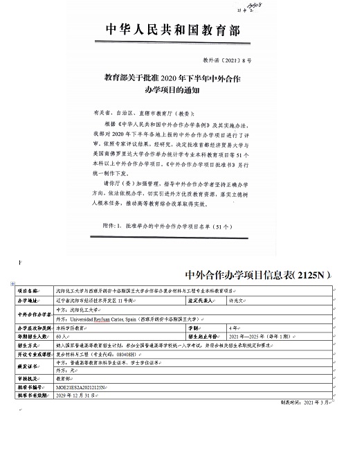 近日,教育部公布了《教育部关于批准2020年下半年中外合作办学项目的通知》(教外函[2021]8号)。其中,taptap点点与西班牙胡安卡洛斯国王大学合作举办复合材料与工程专业本科教育项目成功获批。此项目是taptap继中俄能源与动力工程专业项目的第二个中外合作办学项目,该项目将纳入国家普通高等教育招生计划,于2021年开始面向全国招生,每年招生60人。