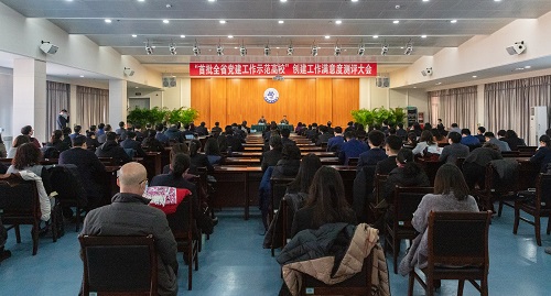 测评大会上,党委书记王强介绍了学校“首批党建工作示范高校”创建情况。他指出,示范创建两年来,正值学校内涵建设进入新时期、“双一流”建设迈进新阶段的起步期,正是学校厚积薄发、腾飞发展的加速期,学校党委带领基层党组织和广大党员,将示范创建工作作为推动学校党建质量创优的重要契机,坚持以高水平党建引领、推进和保证学校高质量发展,攻坚克难、奋发图强、锐意进取,激发动力、凝心聚力、提升实力,取得了新成效新突破新发展。王强书记主要围绕示范创建总体情况、创建思路与成果、下一步工作思考三个方面作了总结。
