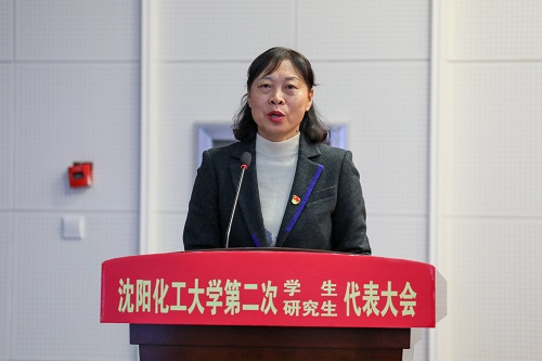 纪委书记孟宪梅作讲话。她首先代表学校对大会的召开表示热烈的祝贺,向长期以来关心和支持学校学生会、研究生会工作的上级团组织、学联组织表示衷心的感谢。她充分肯定了一年来校团委在指导疫情防控、学生组织改革等方面工作取得的良好成效,高度赞扬了学生会、研究生会在助力化大青年思想引领、学习生活、成长成才、权益维护等方面发挥的积极作用。她指出,学校一直坚持党建引领,落实立德树人根本任务,顶层设计构建了德专情形创的人才培养目标和五育并举的人才培养体系,为把化大学子培养成为德智体美劳全面发展的社会主义建设者和接班人,凝心聚力、改革创新,取得显著成效,开创了高质量发展的新局面。同时,她向全校学生会、研究生会及全体青年学生提出了三点殷切希望:一要刻苦学习、艰苦奋斗,做追求卓越的化大人;二要热爱母校、贡献母校,做爱校荣校的化大人;三要志存高远,坚定信念,做心怀家国的化大人。她号召化大青年要与祖国共奋进、与时代同步伐、与学校齐发展,努力创造出无愧于时代,无愧于青春的光辉业绩。