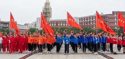 青年师生代表以《我们承诺,用青春告白祖国》为题作国旗下演讲。全体青年学生高举右手,面向国旗庄重宣誓,以响亮的声音表达了化大青年学子共同为学校改革发展、为中华民族伟大复兴贡献青春力量的坚定决心。