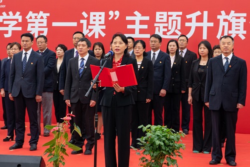 党委书记王强为在场师生讲授了 “开学第一课”。王强书记指出,突如其来的疫情让我们比以往更加深刻地感受到中国力量、中国精神、中国效率,更加坚定地拥有民族自豪感、自信心、凝聚力,更加热爱生命、珍惜时光、珍视彼此,并号召全体化大人以这场特殊的升旗仪式,向奋战在抗击疫情一线的医务人员和志愿者们致敬!向英雄的人民致敬!向伟大的祖国致敬!王强书记对青年学生提出四点希望:一要培养勇于担当的精神,努力做到品德高尚,成为新时代的奋斗者。要艰苦奋斗,自强不息,以实现中华民族伟大复兴为己任,始终保持奋斗状态。二要拥有立志拼搏的理想,努力做到强于实践、勇于创新,成为新时代的领跑者。要在创新创造创业的伟大实践中实现自身价值,始终保持拼搏姿态。三要厚植爱校爱国的情怀,努力做到情商出众,成为新时代的圆梦者。要与时代同步伐、与人民共命运、与祖国心连心,始终保持积极心态。四要增强成长成才的紧迫感,努力做到专业过硬,成为新时代的求知者。要以时不我待、只争朝夕的精神抓紧一切时间去学习,求知善读、永不懈怠,始终保持进取精神,以青春力量去创造青春之化大、青春之民族、青春之中华。