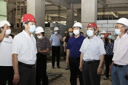 听取汇报后,校领导对工程质量和施工进展给予了充分肯定。许光文校长指出,基础教学实验中心主体成功封顶是“小211工程”项目的一个关键节点,下一阶段要继续加强施工监管,严把安全关、质量关,把“小211工程”打造成为“百年工程”。