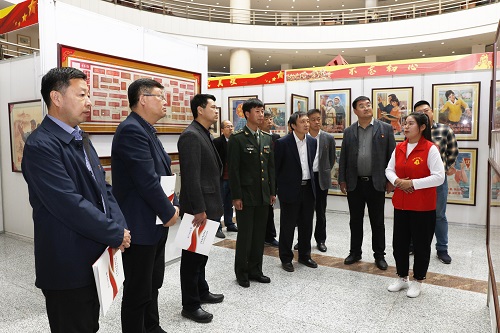 10月21日中午,省委第十一巡回指导组副组长马拥军、省教育厅社会事业高等教育处副处级调研员黄开成、第十一巡回指导组成员白晓东,taptap校领导、党委委员及相关部门人员参观了画展。