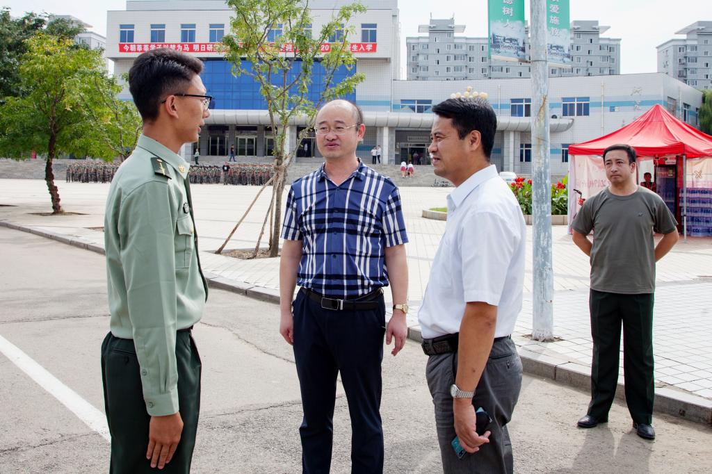9月4日下午,taptap党委书记王强、副校长杨学印来到校园养正路,亲切看望慰问正在进行军训的2019级新生、教官及校武装部工作人员。