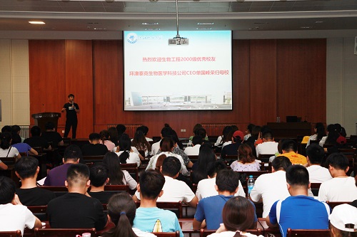 报告会上,单国峰校友首先介绍了拜澳泰克生物医学科技(沈阳)有限公司的相关情况。拜澳泰克生物医学科技(沈阳)有限公司是德国回国科学家团队创办的高科技企业,主要从事以细胞工程技术和基因编辑技术为核心的生物新药研发及再生医学全产业链转化应用产业。目前,公司已在国内与多家三甲医院内建立一流分子遗传学及基因编辑实验平台、符合GMP标准的整体A+C级动态层流细胞实验平台;德国、瑞典联合再生医学实验室拥有1000万欧元设备与世界顶级基因工程、干细胞、分子生物学研发团队。2019年3月,拜澳泰克生物医学——中德干细胞再生医学中心在沈启动,拥有最为国际先进的GMP层流细胞实验室、基因测序及编辑实验平台、分子遗传学实验室、囊胚注射实验平台、生物样本库及综合细胞资源库。是东北地区最大规模的一站式再生医学科研转化中心。
