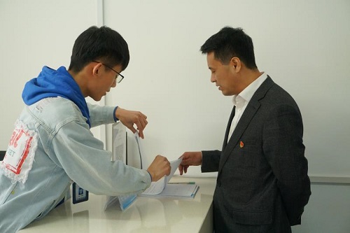 离开博雅书苑,王强书记来到位于大学生生活城D座的大学生自我管理与服务中心。王强书记一一走访了中心各个管理服务窗口,询问工作情况,慰问值班师生。
