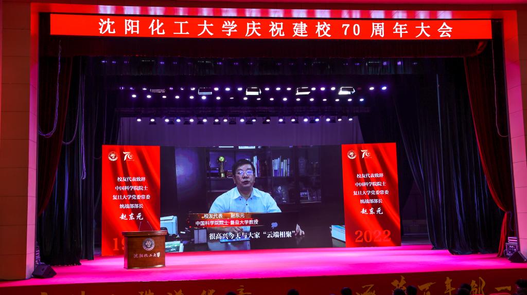 校友代表,中国科学院院士、复旦大学党委常委、统战部部长赵东元教授致辞。他回顾了1990年从吉林大学博士毕业进入沈阳化工学院任教的难忘时光,并为学校近年来在科学研究、学科发展、人才培养等方面取得的成果表示祝贺。他祝福taptap点点70周年华诞快乐,祝愿学校在未来产出更多“从0到1”的原创性成果。
