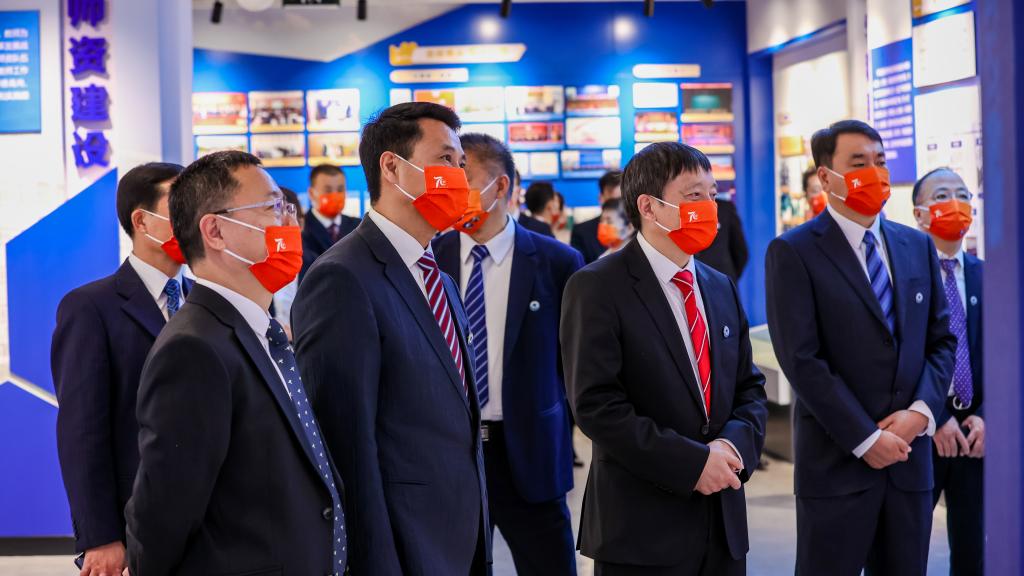 9月24日13时,校领导班子和全体中层干部到校史馆集体参观建校70周年首场展览。