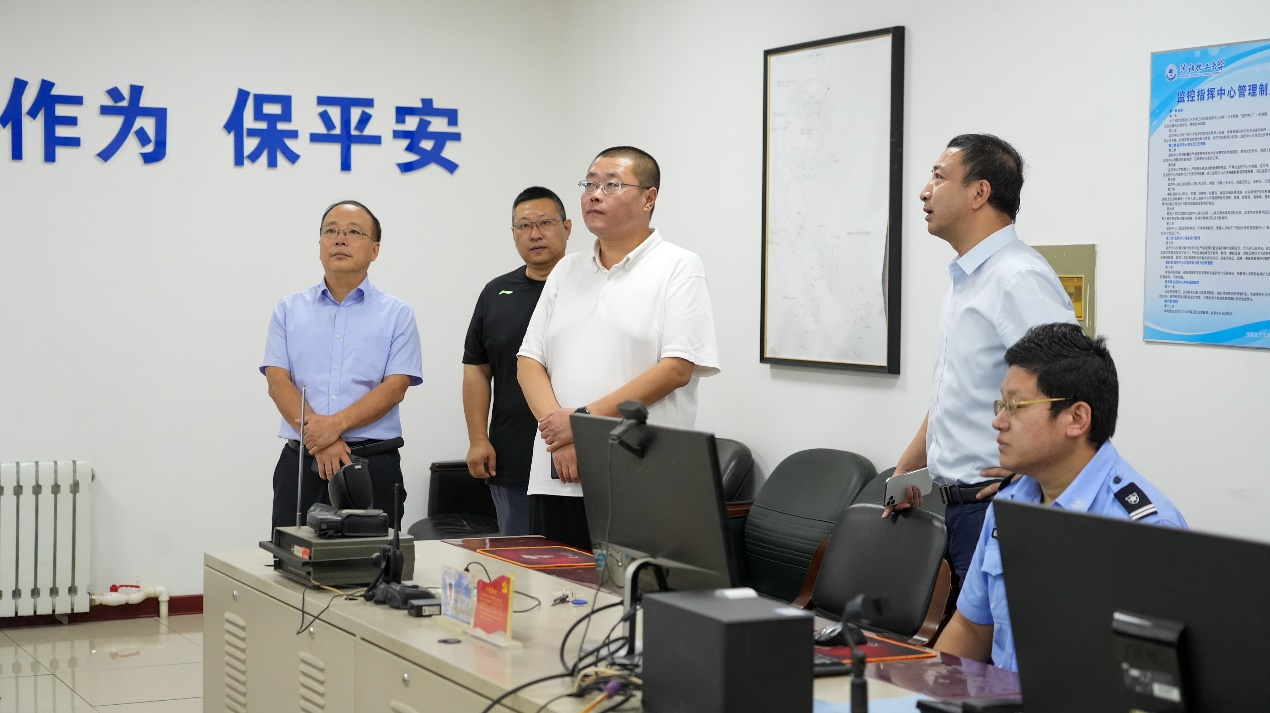 调研过程中,副校长杨学印对秋季开学总体情况进行了介绍,党委宣传部、学生工作部、研究生工作部、研究生院、教务处、资产与实验室管理处、保卫处、后勤与基建管理处、校医院等部门进行详细汇报。副校长杨学印强调,学校始终统筹发展与安全两件大事,高度重视校园安全与秋季开学准备工作,学校党委书记王强暑期多次深入新生宿舍等施工场所,现场调度开学各项准备工作进展情况。新生报到前,党委书记再次深入各学院(部)及相关单位进行了实地检查,现场办公,确保秋季开学各项工作平稳有序。同时,校长许光文就落实上级文件要求与分管校领导提出了工作要求,在新学期工作部署会上,着重强调了做好秋季开学工作,也将维护校园安全稳定作为重要内容进行了安排部署。学校相关职能处室也对标对表上级要求逐项对准备工作进行了落实,各项开学准备工作扎实开展,校园环境安全稳定。