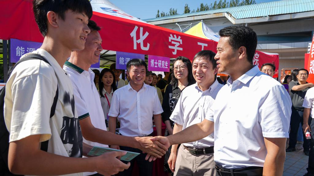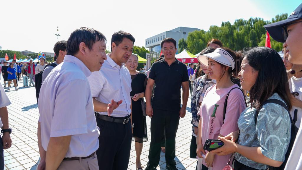 在各学院的报到处,校领导看望慰问了新生和家长,并与他们亲切交谈。校领导表达了对新生们的热烈欢迎,欢迎大家成为化大大家庭中的一员,勉励同学们秉承“强学力行、喻理求真”的校训,为努力建成“五彩化大”贡献青春力量,同心同筑属于化大人的腾飞之梦、强校之梦、名校之梦,以实际行动和优异成绩服务辽宁全面振兴新突破、为强国复兴贡献青春力量。校领导感谢家长们对化大的信任和支持,并表示学校一定会把同学们教育好、培养好,书写属于新时代化大青年的荣光。