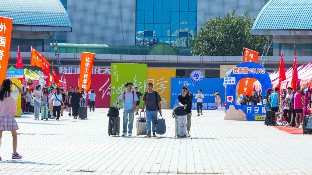 校园里随处可见“化大欢迎你,2023级新同学!”等迎新横幅,大屏幕实时更新新生的生源地报到率、生源地分布图、学院报到情况等。学校精心设计了融合“五彩化大”元素的欢迎新生展板,融入化大光荣传统、新时代化大精神、化大青年价值导向等元素的飘球,为新生们种下“化工报国”的种子。各学院积极筹备迎新工作,结合学院特色和专业特点设计了独具匠心的报到点,营造出浓厚的迎新氛围。学校敞开怀抱,迎接来自五湖四海的学子们。
