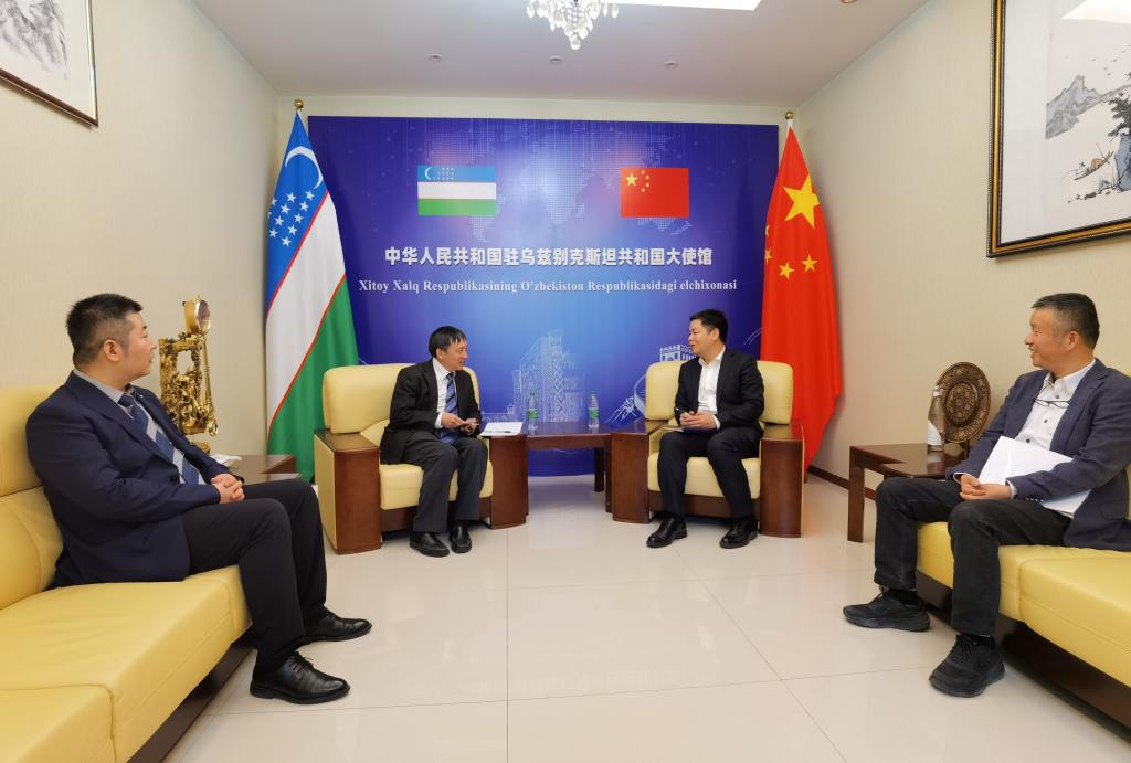 访问期间,许光文一行拜访了我国驻乌兹别克斯坦大使馆,大使馆经济商务处二等秘书刘洋等接待许光文一行。刘洋对许光文校长一行表示热烈欢迎,介绍了乌兹别克斯坦基本情况和“一带一路”在乌建设情况。许光文校长对大使馆的会面安排表示衷心感谢,并介绍了学校发展情况和此行与相关高校、企业开展合作的意向与设想。刘洋对学校加强与“一带一路”国家的教育、科技和人才合作给予高度评价,并表示在大使馆的职责范围内将全力支持taptap与乌方的各项合作。