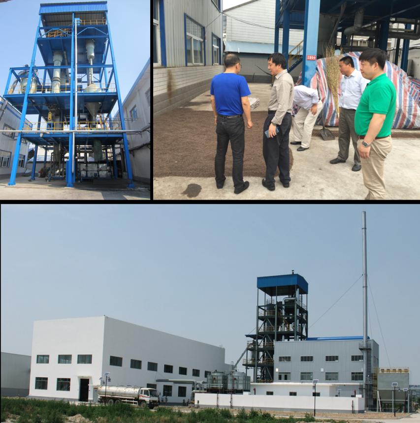 流态化两段气化已在空气气化生产燃气方面成功应用于中药渣、白酒糟等轻工过程的生物质废物,在河南、四川、山东、安徽等地建成了年处理工业生物质废物万吨至5万吨级的多套产业化应用工程(图2为代表性应用),有效实现了气化燃气焦油含量低于50 mg/Nm3的国际先进技术指标(Bioresource Technology 2016, 206, 93–98; Carbon Resources Conversion 2018, 1(2),109–125; Carbon Resources Conversion 2020, 3, 1–18)。