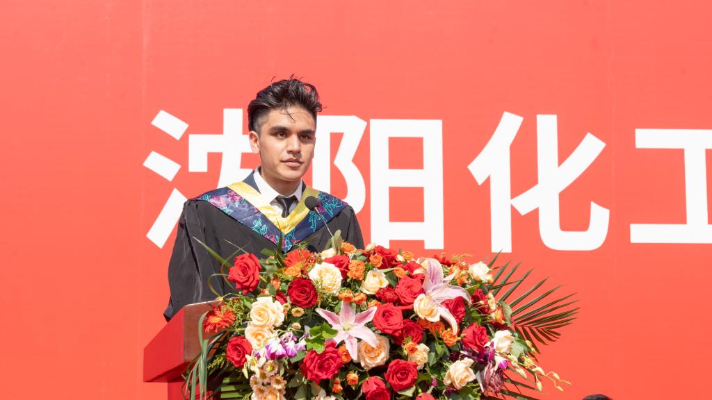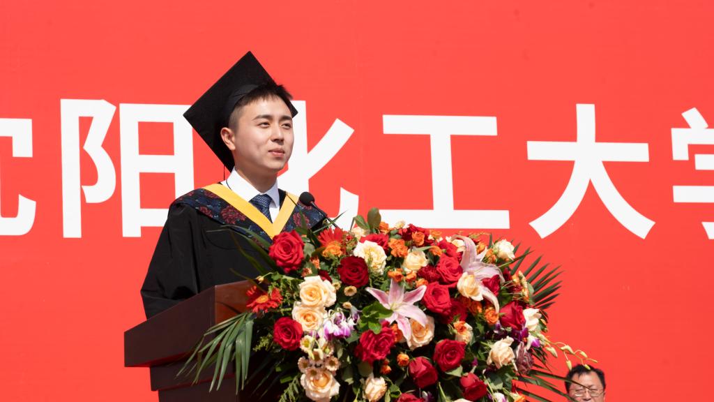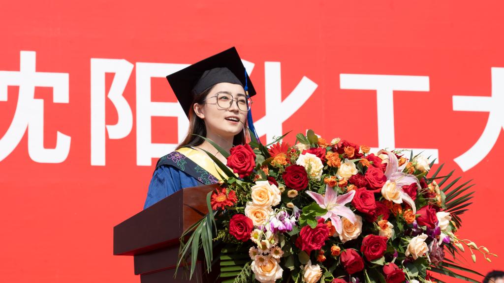 2024届本科生代表王新瑞、研究生代表王诗雨、留学生代表韩瑞代表毕业生发言。他们感恩父母的培育,感谢母校和老师的培养,感怀在化大收获的成长和情谊。他们代表所有毕业生郑重向母校表态,将发挥艰苦奋斗、知难而进、追求卓越、守正创新的新时代化大精神,不负韶华、砥砺前行,成为堪当民族复兴重任的时代新人,续写“化大人”青春奋斗的新篇章!