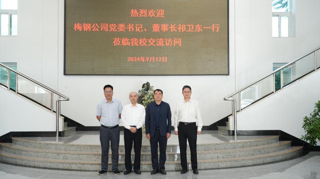 9月12日,中国宝武南京总部总代表、梅钢集团党委书记、董事长祁卫东一行到校交流访问。党委书记周志强会见祁卫东董事长一行。副校长秦高梧,相关部门负责人和教师代表参加交流活动。