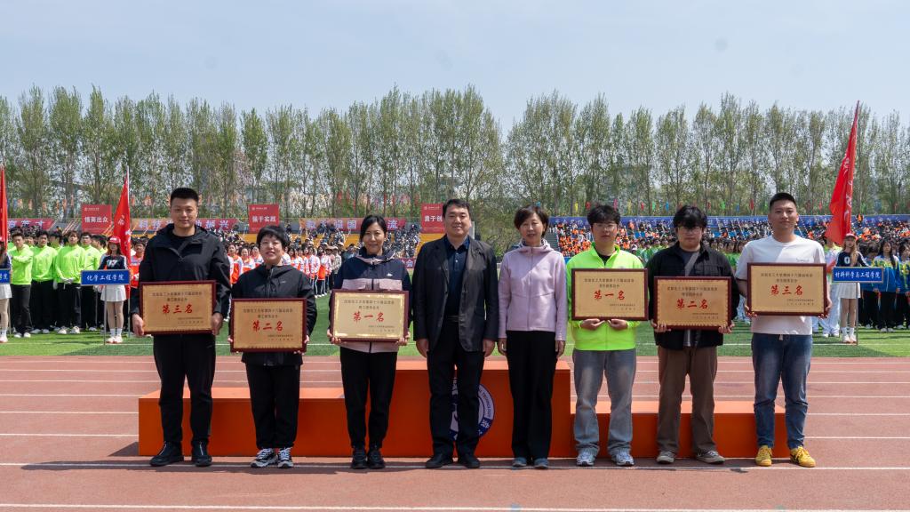 经过近一天半的激烈角逐,机关、机械与动力工程学院、化学工程学院、信息工程学院代表队分获教工团体总分第一至第四名;机械与动力工程学院、化学工程学院、经济与管理学院、材料科学与工程学院代表队分获学生团体总分第一至第四名。机关、经济与管理学院、环境与安全工程学院、理学院、外国语学院、马克思主义学院6个代表队获得教工组体育道德风尚奖;信息工程学院、经济与管理学院、机械与动力工程学院、化学工程学院、国际教育学院、计算机科学与技术学院、材料科学与工程学院、人文与艺术学院8个学院获得学生组体育道德风尚奖。本次比赛共有1人2项(学生男子800米、男子3000米)打破taptap纪录。校青年志愿者协会获得本届运动会突出贡献奖。