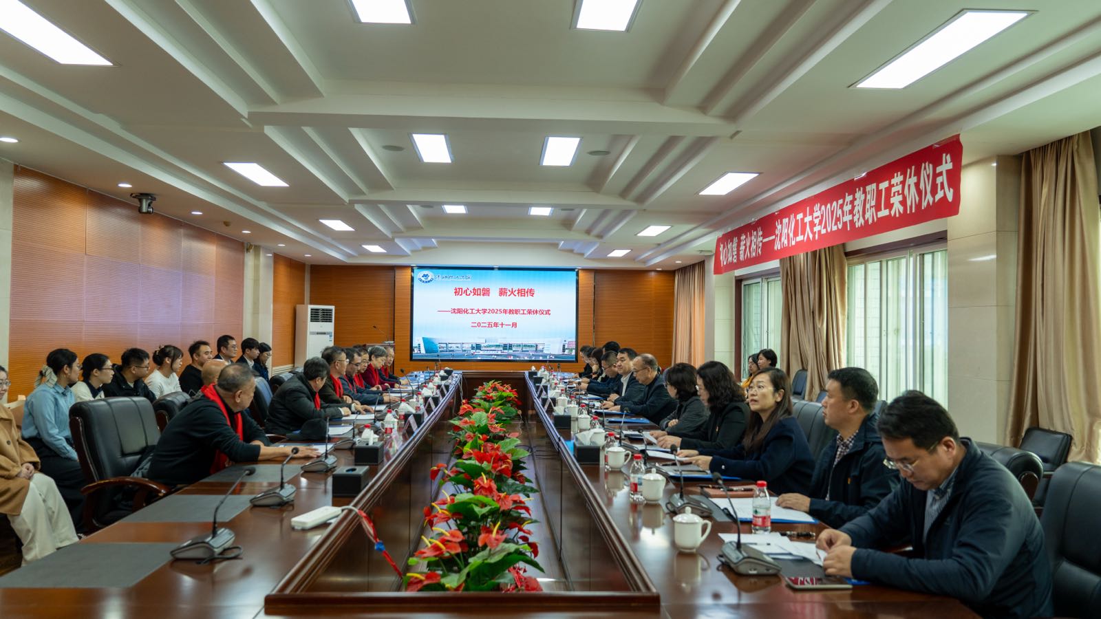 秋光和煦,暖意融融;初心如磐,薪火相传。11月5日,学校在校部第八会议室举行“初心如磐 薪火相传——2025年教职工荣休仪式”,共同祝福17位教职工光荣退休。党委书记周志强,党委常委、副校长杨学印、王国刚出席仪式,荣休教职工代表、相关部门负责人、新入职青年教师代表参加仪式。仪式由王国刚主持。