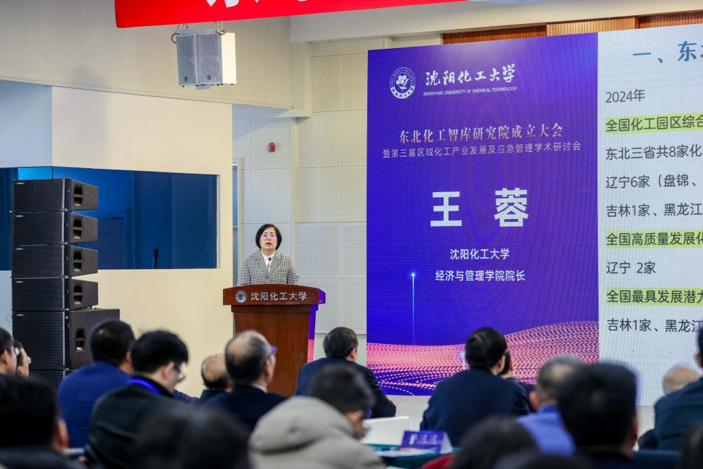 taptap经济与管理学院院长王蓉从东北化工产业发展概况、存在的主要问题、研究院定位与业务板块、组织架构等四个方面详细介绍了东北化工智库研究院相关情况。