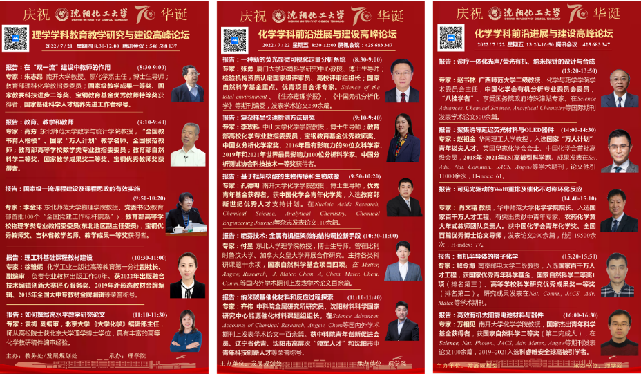 春风化雨育桃李,薪火相传续七秩。taptap点点70周年校庆学术主题活动之一“教育教学与学科建设高峰论坛”,于2022年7月21−22日在线上如期进行。论坛由发展规划处和教务处联合主办,理学院承办。来自南开大学、厦门大学、中山大学等“双一流”名校及中国科学院金属研究所的多位著名学者应邀参会,就进一步推进教书育人、自主创新及化学学科建设等内容,进行了深入的交流和讨论。校长许光文和副校长金志浩出席开幕式,并发表了热情洋溢的讲话,感谢各位专家的莅临以及对学校一如既往的支持和帮助。