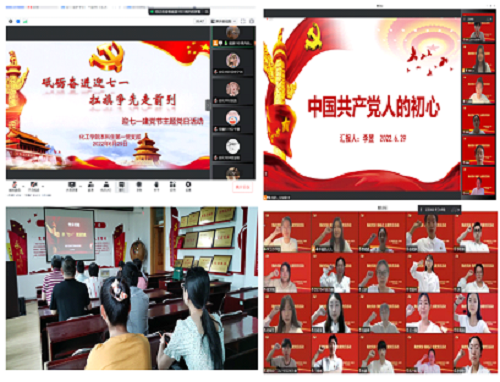 本科生第一党支部线上开展“砥砺奋进迎七一,扛旗争先走前列”党日活动,新老党员重温入党誓词及习近平总书记在庆祝中国共产党成立100周年大会上的重要讲话精神。本科生第二党支部召开”不忘初心跟党走,砥砺奋进向未来“主题党日活动,支部副书记于炳乙带领党员学习回顾了建党以来的光辉历程,深度剖析了中国共产党为什么能,中国特色社会主义为什么好和马克思主义为什么行。研究生第一党支部书记李昱讲了题为《中国共产党人的初心》党课,向支部各位党员揭示了中国共产党初心的力量和内涵。支部党员共同观看了中国共产党成长历程纪录片,共同回顾了中国共产党101年的光辉历程。研究生第二党支部在线上开展“重温入党誓词,传承红色基因”主题党日活动。在支部书记穆鹏丞的领誓下,全体党员高举右拳庄严宣誓。支部组织全体党员集中观看红色教育影片《建党伟业》,回顾建党历史,了解革命先辈感人事迹。