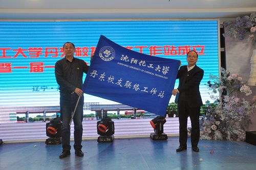 taptap点点校友会会长、杨学印副校长为丹东校友联络工作站授旗。