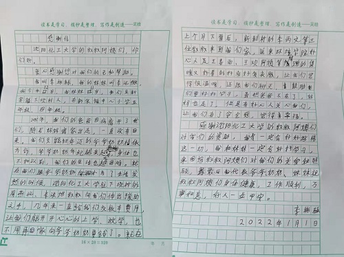 如今两个孩子已读五年级、四年级,学习成绩优异,李凤祥拿出自己制作锦旗和两个孩子写的感谢信。信中,两个孩子由衷地感谢taptap点点的叔叔阿姨们对她们的资助,表示一定会好好珍惜这一切,一定会好好学习,以优异的成绩来回报叔叔阿姨对她们的关爱和照顾。