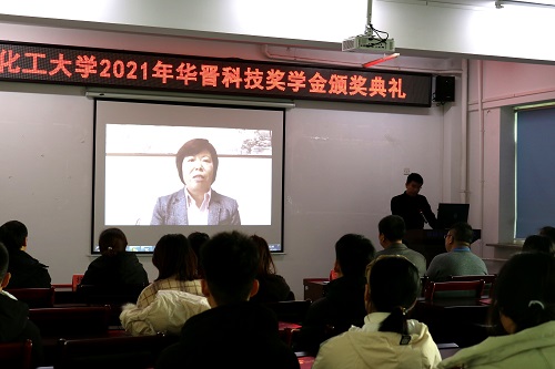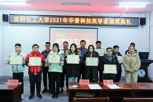 王莹副书记宣读了2021年“华晋科技奖学金”获得者名单,与参会嘉宾为获奖学生颁奖。
