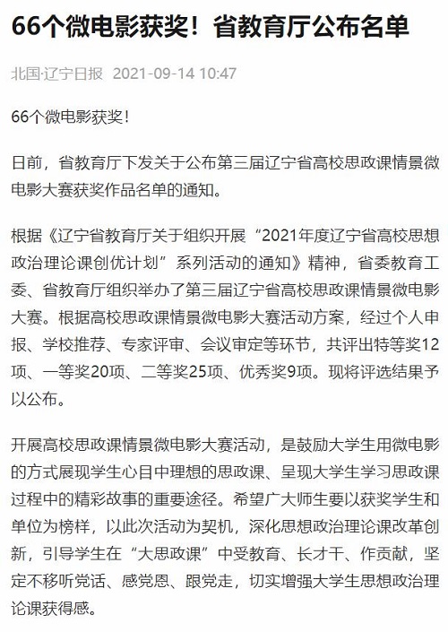 近日,由辽宁省教育厅主办的2021年第三届辽宁省高校思政课情景微电影大赛评选结果揭晓,taptap马克思主义学院孔凡飞老师指导的参赛作品《遇见》荣获大赛一等奖。