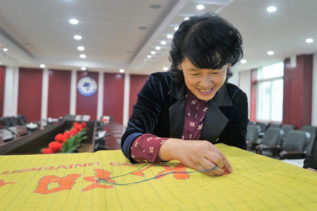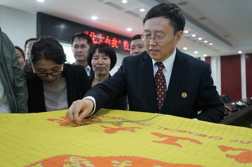 巨幅校徽十字绣将在每一位化大教工手中传递、接力,把“我就是化大,化大就是我”的责任绣在上面,把对事业对化大的热爱绣在上面。该幅刺绣作品将于明年校庆前夕完成,为校庆70周年献礼!