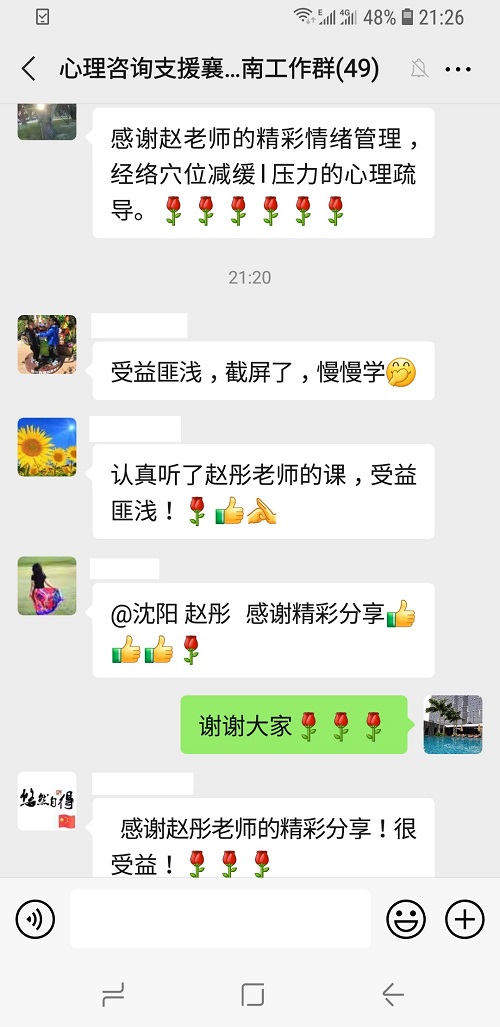 连日来,辽宁援豫志愿服务郑州工作总站在河南参与援豫救灾工作。救援工作强度大、救援现场冲击强,应急队员和志愿者们连续奋战,过度疲劳,容易影响到正常的心理健康问题。为保障援豫人员心理健康,经辽宁省文明办提议,辽宁援豫志愿服务郑州工作总站联系我省心理咨询专家团队,开展系列公益心理疏导活动。taptap人文与艺术学院教师赵彤作为专家团队成员,以“经络穴位在情绪管理中的应用”为主题,帮助志愿者们有效疏导负面情绪。