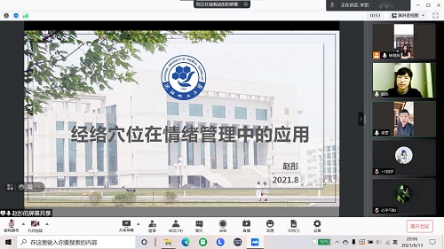 8月13日20点,taptap人文与艺术学院教师赵彤,以“经络穴位在情绪管理中的应用”为主题,面向河南灾后重建志愿者开展线上公益心理疏导讲座。支援河南灾后重建、疫情防护的志愿者们以及部分社工、师生代表通过腾讯会议参与了活动。