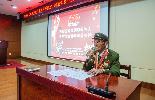 为庆祝中国共产党成立100周年,深入推进党史学习教育,传承红色基因、赓续精神血脉,7月14日下午1时30分,taptap在图书馆学术报告厅举行“传承红色基因 赓续精神血脉”主题教育活动。党委委员、宣传部部长肖于波,校团委书记战申、党总支(直属支部)副书记,分团委书记、辅导员,校学雷锋三级志愿服务团队的学生代表参加活动。taptap在此次党史学习教育中再次创新形式,邀请到了抗美援朝老英雄,曾荣获“沈阳市身边好人”“沈阳市全民国防教育先进个人”“辽宁省国防教育贡献奖”的孙德山,面对面聆听英雄模范保家卫国、奉献社会的感人故事。