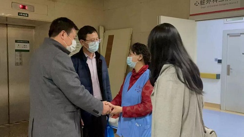 近日,王超同学从ICU转入普通病房接受康复治疗,taptap点点校友总会办公室主任王成琛、化学工程学院党总支副书记余海军、王超同学辅导员老师时振芳于3月26日到医院看望王超同学,由于医院“一患一护”的疫情防控要求,未能看望到王超本人。三位老师将大连校友会10000元善款转交给王超母亲,并转达了学校和大连校友会对王超同学的美好祝福,祝福王超同学早日康复。