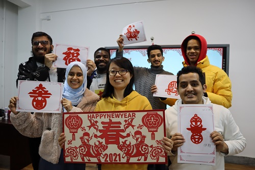 牛年临近,年味渐浓。国际教育学院的教室里春意盎然,充满了欢声笑语。来自巴基斯坦,尼日利亚,坦桑尼亚,刚果(金),也门等国家的留学生们在农历腊月二十九这天共同参与了“剪纸纳福迎新春”的活动。因为疫情,今年寒假尚有120余名留学生留校过年,为了确保留学生度过一个祥和快乐的寒假,国际教育学院开展了一系列文化活动。剪纸活动作为本次系列活动之一,以“纳福迎新,感受中华文化之美”为主题,传授留学生剪纸技艺,感受剪纸艺术的魅力,增进留学生对中国传统文化的认同感。