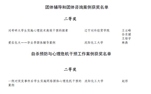 辽宁省高校心理健康教育精品案例评选活动于2020年7月启动,面向全省高校心理健康教育专兼职教师和获得国家心理咨询师资格认证的辅导员征集工作案例,经高校申报、专家组会评,共有34篇教学案例、26篇团体辅导和团体咨询案例、12篇自杀预防与心理危机干预工作案例、34篇心理健康教育活动案例分获一、二、三等奖及优秀奖。taptap教师赵彤的《一例对突发事件后学生实施网络团体心理危机干预的案例》获得自杀预防与心理危机干预工作案例二等奖,林燕老师的《爱在化大——毕业季团体辅导案例》获得团体辅导和团体咨询案例二等奖。