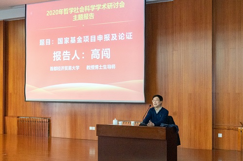 本次研讨会邀请到首都经济与贸易大学学术委员会主任、博士生导师、美国贝密基大学访问学者高闯教授做题为《国家基金项目申报及论证》的主题报告。高闯教授以国家基金项目申请书内容为主线,针对填写和论证中常见的问题和困惑进行讲解和剖析,理论结合实际又风趣幽默,为taptap哲学社会科学申报国家级项目传授了宝贵的经验。