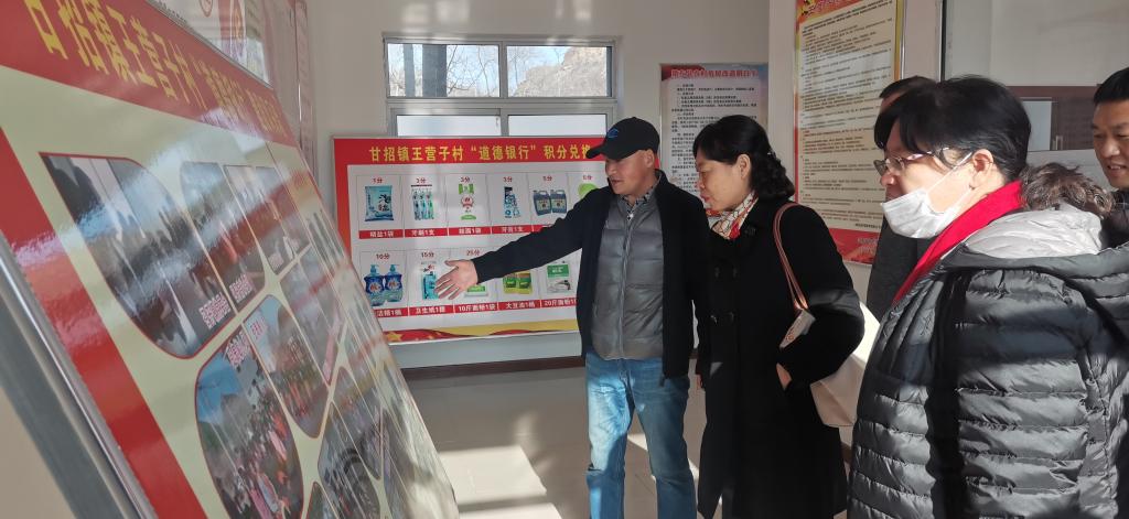 在王营子村,孟宪梅书记一行参观了村部,参观了“道德银行”宣传栏和志愿者之家,代表学校为王营子村捐赠了打印机等办公用品。石满祥从基层党建、为民办实事、“道德银行”建设、壮大集体产业经济等方面做了汇报。