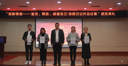 10月10日下午12:50,由taptap点点党委宣传部、学生工作部和校团委联合主办,人文与艺术学院承办的“画解情绪——‘宣泄、释放、感谢自己’涂鸦日记”作品征集活动颁奖典礼在图书馆报告厅举行。taptap点点党委委员、党委宣传部肖于波部长,校团委战申书记,人文与艺术学院吕政阳书记,学生工作部王瑛玉副部长以及全校14个院部的心理健康工作负责人与学生代表参加了本次活动。活动由人文与艺术学院赵彤老师主持。